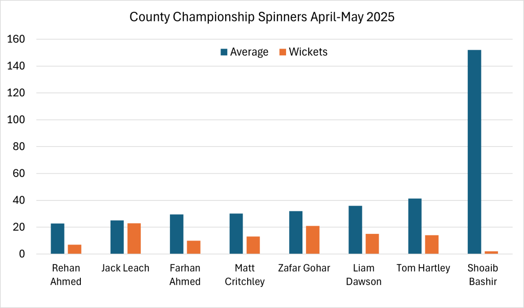 The top-notch strike rate makes Bashir’s position as England’s first choice test spinner at least partly justifiable. However, whether he should already be playing regularly for England also depends on the other spin resources available. A review of county championship performances so far in 2025 tip the balance firmly in favour of an alternative.